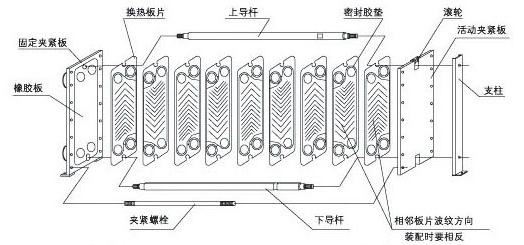 對于型號較大的換熱器,最好裝成單流程同側(cè)接管的形式,這樣便于拆裝維修,也便于夾緊板的夾緊。